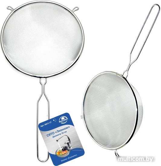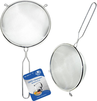 | Информация | Сито всегда пригодится на кухне, используется для процеживания компотов, морсов, отваров и других жидкостей. Большое сито «Эконом» позволяет промывать в нем овощи и фрукты. Конструкция изделия предельно проста – стальная сетка, ободок и ручка. Приспособление изготовлено из стали, это обеспечивает долговечность, устойчивость к коррозии, это гигиеничный материал, который полностью безопасен для продуктов питания. Диаметр 16 см. |