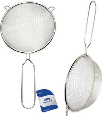 | Информация | Сито – это простое и нужное приспособление, которое понадобится в каждом доме. Изделие используется для промывания овощей, фруктов, ягод, процеживания компотов, травяных отваров и слива макарон. Сито изготовлено из нержавеющей стали, состоит из металлической сетки, ободка и ручки. Ручка удобна не только во время использования сита, но и для размещения его на крючке. На ободке есть петельки, фиксирующие инструмент на посуде — кастрюлях, пиалах, мисках. Материал отличается долговечностью, не вступает в реакцию с продуктами питания, не деформируется со временем. После использования промыть изделие с моющим средством. Диаметр 16 см. |