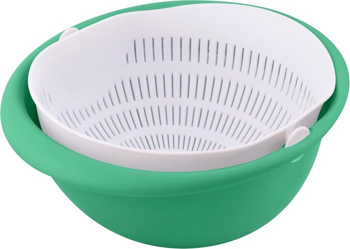 | Информация | Миска-дуршлаг — настоящая находка для хозяйки. Приспособление подойдет не только для мытья овощей и фруктов, но и для размораживания продуктов: мяса, рыбы, ягод. Внутренняя часть имеет отверстия, сквозь них стекает вода в основную емкость. Чтобы слить жидкость, достаточно наклонить миску над раковиной привычным способом. Подвижная внутренняя часть перейдет в горизонтальное положение и все продукты останутся на месте. Все гениальное — просто. После применения достаточно промыть в проточной воде с использованием моющих средств. |