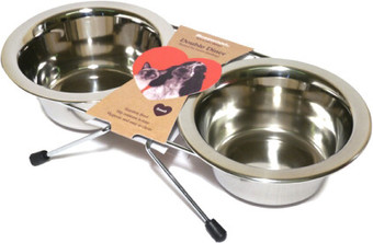 | Информация | Двойные миски особенно популярны у владельцев кошек, но с двумя съемными 4,5-дюймовыми тарелками они также отлично подходят для небольших собак. Подставка поставляется с нескользящими ножками и слегка приподнимает посуду для облегчения кор мления. Данная модель выделяется необычным дизайном в виде отпечатков лапок по краям мисочек._x000D_ Бренд Rosewood (Великобритания)._x000D_ |