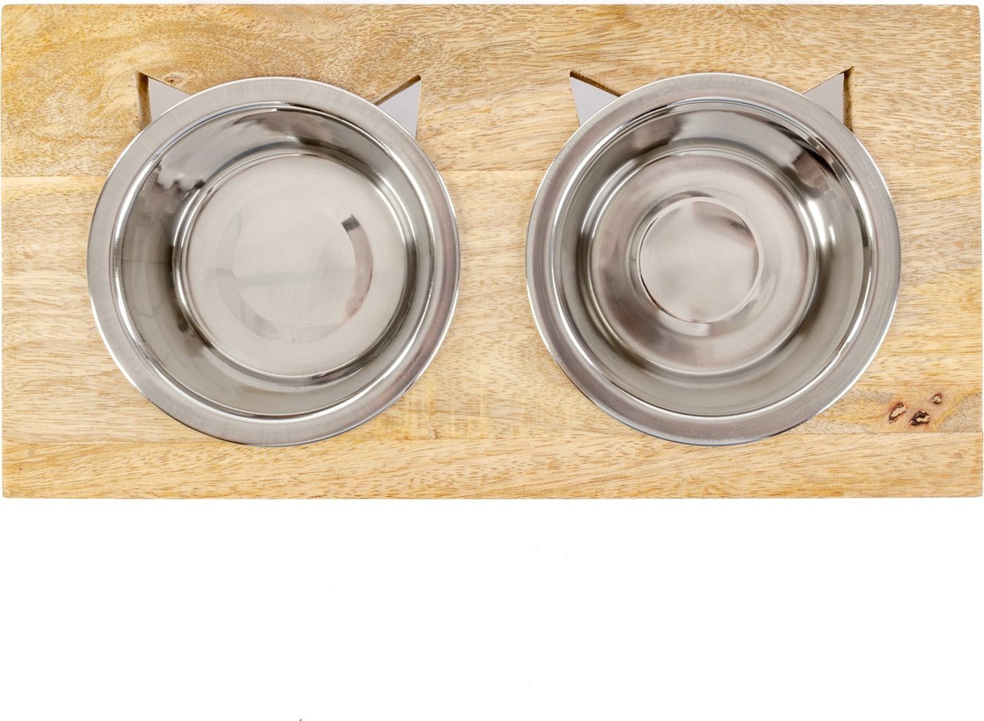 | Информация | Миски из нержавеющей стали на деревянной подставке. Этот аксессуар не только украсит интерьер вашего дома, но и сделает процесс кормления более комфортным и безопасным для вашего любимца._x000D_ _x000D_ Подставка выполнена из натурального дерева, тщательно отшлифованного и обработанного для максимальной гладкости и безопасности. Дерево — экологически чистый материал, который не вызывает аллергических реакций и абсолютно безопасен для животных. В подставке аккуратно вырезаны два отверстия в форме кошачьей головы с милыми ушками, что придает изделию оригинальный и привлекательный внешний вид. В отверстия вставляются две миски из высококачественной нержавеющей стали. Нержавеющая сталь — идеальный материал для мисок, так как она не впитывает запахи, легко моется и не подвержена коррозии. Благодаря этому миски долго сохраняют привлекательный внешний вид и гигиеничность._x000D_ Подставка приподнимает миски над полом примерно на 5 см, что является оптимальной высотой для комфортного кормления кошек. Согласно исследованиям ветеринаров, приподнятые миски способствуют правильному пищеварению и уменьшают нагрузку на позвоночник и суставы животного во время еды._x000D_ _x000D_ Особенности:_x000D_ экологически чистые и безопасные материалы - натуральное дерево и нержавеющая сталь;_x000D_ стильный и оригинальный дизайн, гармонично вписывающийся в любой интерьер;_x000D_ оптимальная высота подставки для комфортного кормления и правильного пищеварения;_x000D_ нескользящие накладки на ножках для устойчивости и безопасности;_x000D_ отсутствие шума и лязга благодаря деревянной основе;_x000D_ простота ухода и долговечность материалов._x000D_ _x000D_ Благодаря деревянной основе миски не издают неприятного лязгающего звука при контакте с подставкой, что делает процесс кормления тихим и спокойным. На ножках подставки предусмотрены специальные нескользящие накладки, которые обеспечивают устойчивость конструкции и предотвращают скольжение по полу. Сами миски легко моются в ручную или в посудомоечной машине, а подставку легко очистить обычной просто влажной тканью или губкой._x000D_ _x000D_ Кроме того, нержавеющая сталь признана ветеринарами наиболее безопасным материалом для мисок, так как она не выделяет вредных веществ и легко дезинфицируется. Деревянная подставка, в свою очередь, является экологичным и эстетичным решением, которое гармонично вписывается в современные тенденции оформления интерьера. |