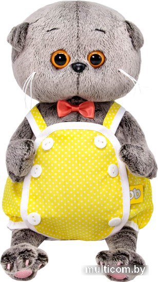 | Информация | Котенок в миленьком песочнике из хлопка канареечного цвета в мелкий горошек, с отделкой белым кантом и белыми пуговками. Также в комплекте маленький галстук бабочка из атласной ленты. |