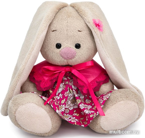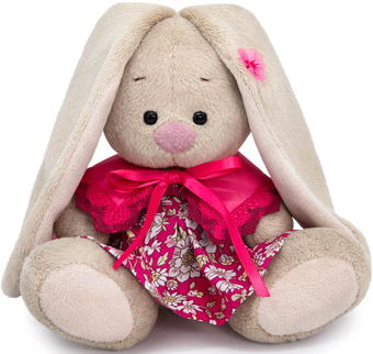 | Информация | Малышка в милом х/б сарафанчике в белые цветочки на малиновом поле. Съемный воротник из атласного крепа с отделкой цветным плетеным кружевом и с завязкой на атласную ленту. На голове у Зайки маленький розовый цветочек. |