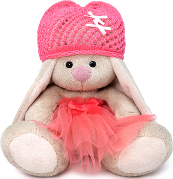 | Информация | Малышка Ми в комплекте цвета розовых ракушек — вязаной шапочке с двумя белыми атласными бантиками и пышной юбочке из сеточки, украшенной розовым бантом. |