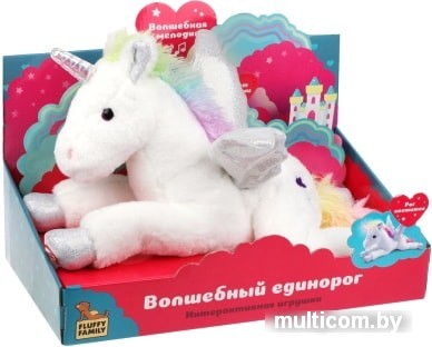 | Информация | При включении игрушка забавно машет крылышками и проигрывает приятную мелодию, рог эффектно светится. Для того, чтобы активировать все эти функции, единорогу нужно нажать на переднюю ножку.Звуковое устройство расположено в кармане на животе игрушки. Перед игрой необходимо извлечь блокиратор из отсека для элементов питания. |