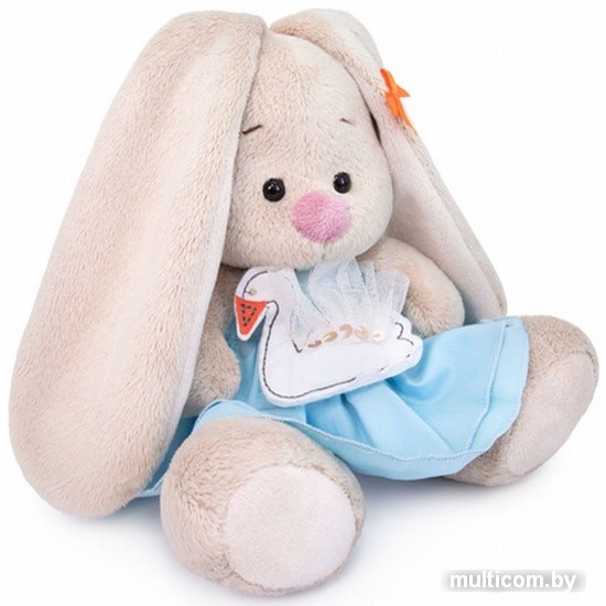 | Информация | Зайка в нежно-голубом сарафанчике с двойной юбкой, спереди украшенный белоснежнымлебедем. На ушке у Зайки оранжевый бантик. |