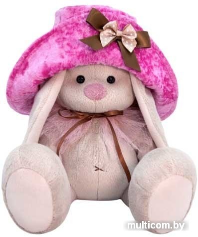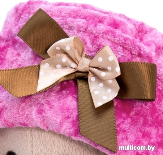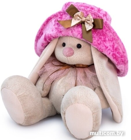| Информация | Шикарная объёмная шляпа из бархата цвета лилового цикломена, украшенная бантом из двухатласных лент, шоколадного и кофейного цвета. Также на Зайке нежная пелеринка из двух слоёв нежнорозовой сеточки, завязывающаяся на атласную шоколадную ленточку. |