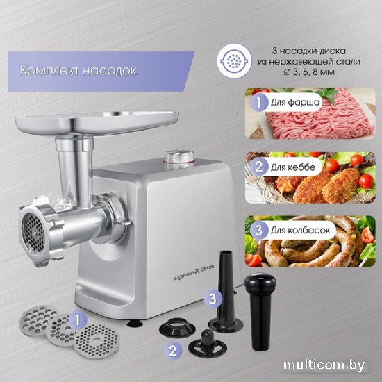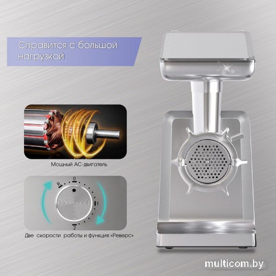 | Информация | ? Мясорубка ZMG-045 обладает мощностью 800 Вт и максимальной мощностью 2700 Вт, способна перерабатывать до 2.7 кг мяса в минуту, что позволяет быстро и качественно приготовить различные домашние блюда, такие как котлеты, пельмени, и голубцы. Раструб мясорубки имеет внутреннюю спиралевидную перфорацию, что гарантирует 100% выход продукта, а нож из нержавеющей стали с лазерной заточкой эффективно измельчает любое мясо. ? Функция защиты двигателя от перегрузок предотвращает повреждения при наматывании жил на шнек, а функция реверса позволяет прокрутить шнек в обратную сторону без разборки устройства. ? Шнековый блок увеличенного диаметра: 60 мм, а металлическое соединение двигателя со шнеком обеспечивает повышенную прочность механизма и устойчивость к большим нагрузкам. ?? Корпус мясорубки имеет современный дизайн и лоток для хранения насадок, а лоток для подачи мяса выполнен из стали. Кнопка фиксации рабочего блока облегчает процесс сборки и разборки прибора, а прорезиненные ножки обеспечивают надежное крепление на поверхности во время работы. ? В комплектацию входят 3 решетки из нержавеющей стали с отверстиями разного диаметра для различных видов рубки, а также насадки для приготовления колбасных изделий и кеббе. |