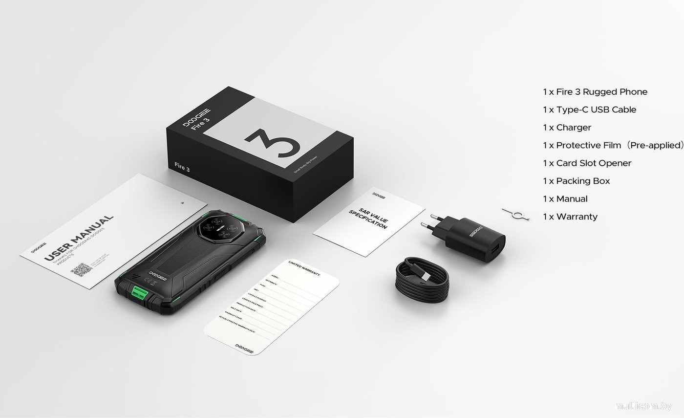 | Информация | - DOOGEE Fire 3 — это компактный, но мощный защищённый смартфон, созданный для активных пользователей и экстремальных условий. Лёгкий корпус весом всего 291 г и размеры 162,5?77,4?17,8 мм делают его удобным для повседневного использования без лишней громоздкости. - Прочный и стильный дизайн выполнен с применением технологии двойного литья, благодаря чему чехол и корпус сливаются в цельную конструкцию. Матовая текстура придаёт устройству индустриальный и современный характер, а эргономичная форма обеспечивает удобный хват даже в перчатках или на влажной поверхности. - Экран 5,5'' HD+ IPS оптимален для комфортного управления одной рукой, чтения и общения. Он остаётся чётким и ярким при любом освещении — на солнце, в темноте или в помещении. Дополнительные режимы защиты зрения, включая снижение синего свечения и адаптивную яркость, делают работу с экраном менее утомительной. - Батарея 8350 мА·ч обеспечивает длительную автономность даже в компактном корпусе. Смартфон готов сопровождать вас целый день — будь то походы по пересечённой местности, работа или развлечения. - Защита по стандартам IP68/IP69K и MIL-STD-810H позволяет не бояться влаги, пыли и падений. Этот смартфон выдерживает экстремальные условия эксплуатации, что делает его надёжным спутником в путешествиях и работе. - Android 15 и процессор Unisoc SC9863A обеспечивают стабильную производительность и плавную работу. Смартфон поддерживает до 12 ГБ оперативной памяти (с виртуальным расширением) и 64 ГБ встроенной памяти, чего достаточно для приложений, фото и повседневных задач. - Камеры 13 Мп и 8 Мп позволяют делать чёткие снимки природы, объектов и селфи, сохраняя детали и естественные цвета. - DOOGEE Fire 3 — это надёжный защищённый смартфон с премиальными деталями, большим аккумулятором и современными функциями, который подходит и для работы, и для приключений. |