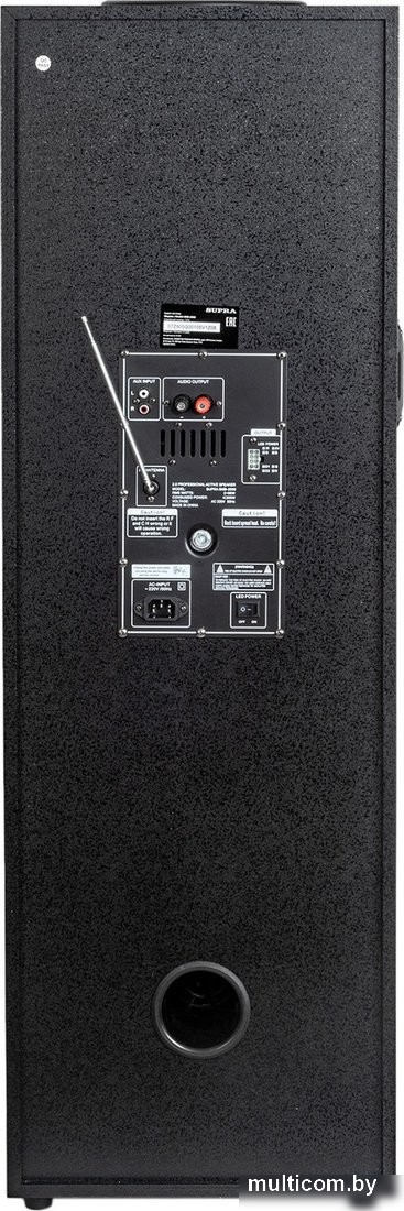 | Информация | - Эта аудиосистема (комплект из двух колонок) идеально подойдет для вашего домашнего кинотеатра или вечеринок. Мощная музыкальная колонка работает от сети 220 В (не портативная), порадует вас своим качественным звуком и оригинальным дизайном. - Акустическая система подойдет для использования в квартире и на даче. Вы сможете создавать незабываемые вечера, исполняя любимые хиты на вечеринках либо просто наслаждаясь качественным звучанием любимых композиций с многоцветной подсветкой. - Динамики сабвуферы 4 x 10” (25 см) обеспечивают объемный звук и мощный бас, который придаст вашему прослушиванию глубину и насыщенность. Бумбокс с двумя микрофонами (в комплект не входят) позволит петь дуэтом без лишних хлопот. - Большая колонка имеет богатый функционал: от беспроводного подключения к телефону или компьютеру до двух USB-портов для проигрывания музыки с флэшки. - Блютуз колонка обладает встроенным радиоприемником. Подключите напольную акустику к телевизору или компьютеру, и вы получите концертную площадку прямо у вас дома. - Высокое качество звучания, уникальный дизайн и широкий функционал делают эту аудиосистему отличным выбором для всех любителей музыки. - Не упустите возможность сделать ваши вечера незабываемыми! |