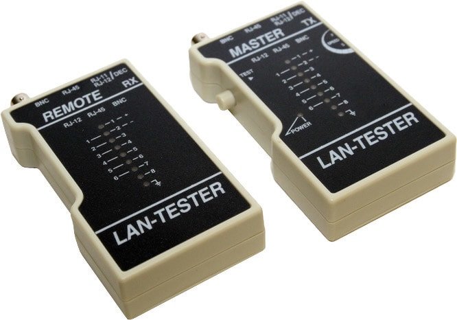 | Информация | Предназначен для тестирования телефонных, коаксиальных и кабелей на основе витых пар. Содержит в себе два блока и выполняет тестирование локальной сети и соединительных шнуров типа патч-корд (RJ45/11/12, FTP и BNC). Тестирует правильность соединения каждого провода в кабеле. Проверяет правильность обжима, обрыв и короткое замыкание. Проверяет целостность экрана для экранированной витой пары. Определяет расстояние до обрыва кабеля. |