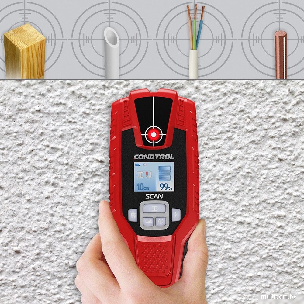 | Информация | Настенный сканер CONDTROL Scan – это инструмент, предназначенный для обнаружения скрытой электропроводки, деревянных, металлических и пластиковых конструкций в стенах. Информация отображается на удобном монохромном экране. Удобная клавиатура позволяет определить все настройки. С помощью режима ZOOM датчик можно сделать еще более чувствительным. Красный светодиод загорается при обнаружении искомого материала. Звуковой сигнал можно включить опционально. |