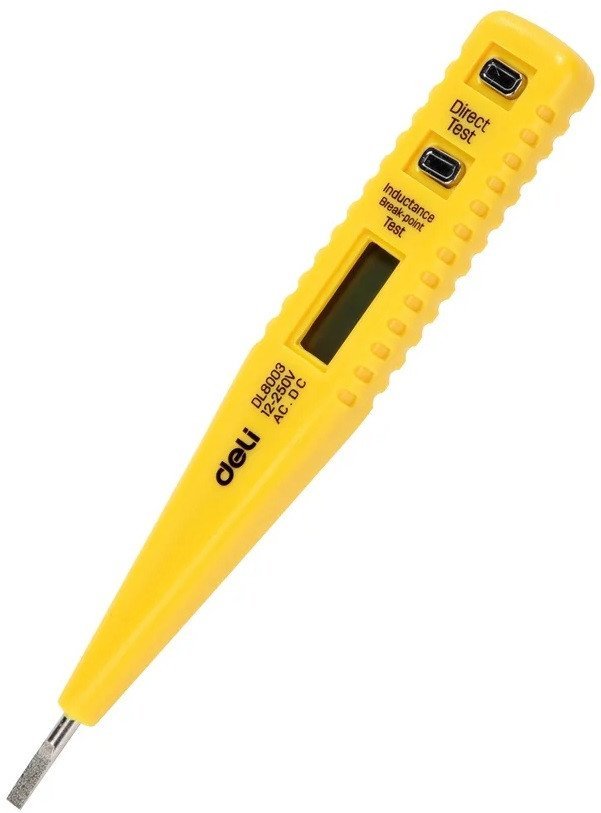 | Информация | Индикаторная отвертка-тестер напряжения DELI цифровая DL8003 102974 представляет собой цифровой тестер для определения наличия электрического тока в электрических сетях контактным способом, а также проверки целостности электрических цепей, электрических лампочек, предохранителей, проводов и наличия электромагнитного излучения. Оснащён дисплеем и не требует элементов питания для работы. |