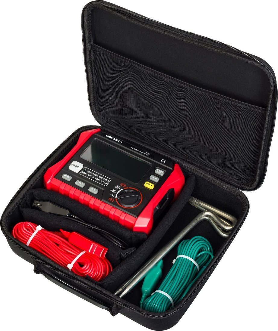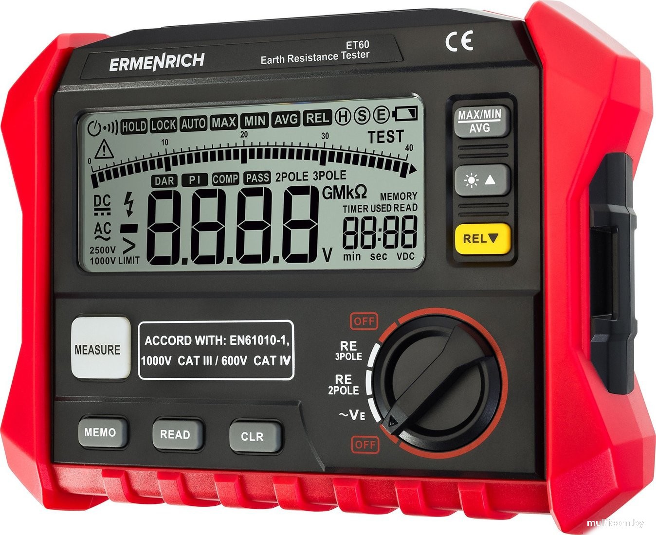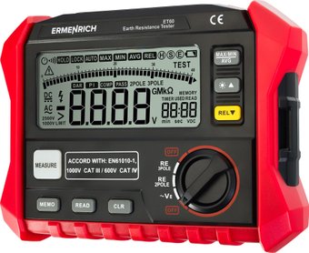 | Информация | - Тестер заземления Ermenrich Ping ET60 – это надежный прибор для измерения сопротивления заземления в диапазоне от 0 до 4 кОм. Он оснащен ЖК-дисплеем, который предлагает два формата отображения: числовой и аналоговый (графическая шкала). Удобный поворотный переключатель позволяет легко выбирать диапазон измерения. - Если вам нужно отложить просмотр результата замера (например, когда экран повернут от вас), функция Hold поможет «заморозить» данные на дисплее для последующего анализа. Устройство также сохраняет минимальные, средние и максимальные результаты измерений, что делает его еще более удобным в использовании. - В комплект входят 3 тестовых провода и 2 штыря заземления. Обратите внимание, что источники питания (8 пальчиковых батареек) не включены в комплект и их нужно заказывать отдельно. Для достижения точных результатов рекомендуется проводить измерения при высоком уровне заряда. - При низком уровне заряда срабатывает оповещение о необходимости замены батарей. Тестер автоматически выключается через 5 минут бездействия, что помогает экономить энергию. - Этот прибор идеально подходит как для профессиональной работы при прокладке и обслуживании электросетей, так и для домашней диагностики электропроводки. Основные особенности: • Метод преобразования постоянного тока для замера сопротивления • Метод среднего численного выпрямления для замера напряжения • Сохранение минимумов, средних значений и максимумов, память на 100 групп измерений • Фиксация результата на дисплее (функция Hold) • Относительные измерения по опорным значениям (функция REL) • Работа от батареек, индикация уровня заряда, автоматическое отключение при бездействии - Комплектация: • Тестер заземления • Тестовые провода – 3 шт. • Вспомогательные штыри заземления – 2 шт. • Сумка-чехол • Инструкция по эксплуатации и гарантийный талон |