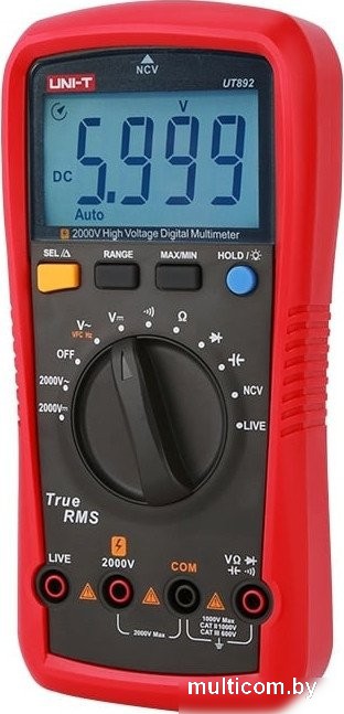 | Информация | Высоковольтный цифровой мультиметр UT892 обеспечивает измерение переменного/постоянного напряжения до 2000 В с полной защитой от перегрузки. Специально разработанная входная клемма 2000 В и индикация для измерительных проводов позволяют пользователям безопасно и эффективно проводить электрические измерения. Измеритель имеет режим VFC для точных измерений частотно-регулируемых приводов и шумных устройств. Встроенный NCV (детектор проводки) помогает пользователям обнаруживать наличие проводов под напряжением бесконтактным методом, а тест LIVE может идентифицировать провод под напряжением с помощью одного измерительного провода. UT892 имеет съемный резиновый футляр, в который также можно помещать измерительные щупы для работы одной рукой. |