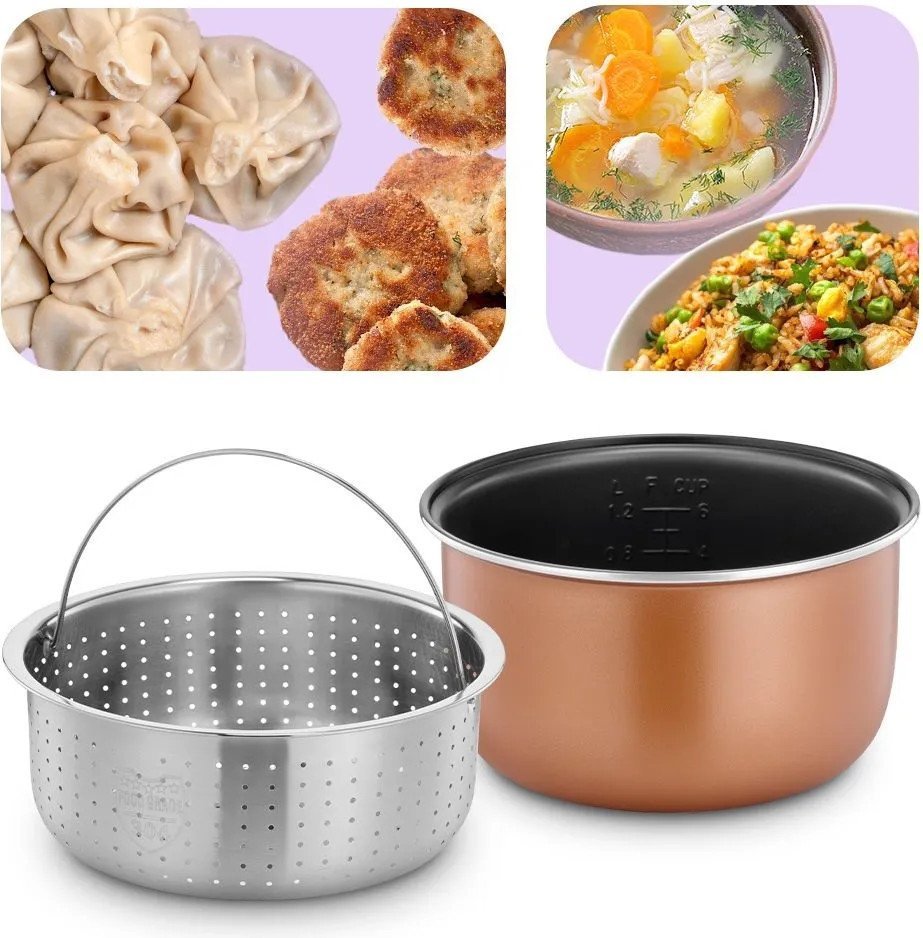 | Информация | -Мультиварка Kitfort КТ-220 – это универсальное устройство для кухни, которое помогает значительно упростить процесс приготовления различных блюд и сделать питание более здоровым. Благодаря наличию шести автоматических программ – две для риса, а также режимы «Каша», «Пирог», «Суп» и «Подогрев» – вы сможете легко готовить как простые, так и более сложные блюда, а функция разогрева позволяет быстро подать теплую еду на стол. -В комплекте с мультиваркой идет чаша-пароварка, что открывает дополнительные возможности для приготовления пищи на пару, сохраняя максимум полезных веществ в продуктах. Это особенно удобно для тех, кто придерживается принципов правильного питания или готовит для детей. -Встроенные аксессуары, такие как мерный стакан и пластиковая ложка, делают процесс готовки ещё более комфортным. Мерный стаканчик помогает точно отмерять ингредиенты для идеальных каш и супов, а пластиковая ложка бережно обращается с антипригарным покрытием чаши. -Помимо этого, в инструкции к устройству вы найдете подборку рецептов, которые позволят разнообразить домашнее меню и попробовать новые вкусные блюда. Корпус мультиварки выполнен из пластика, а чаша имеет антипригарное покрытие для удобства эксплуатации и легкой очистки. |