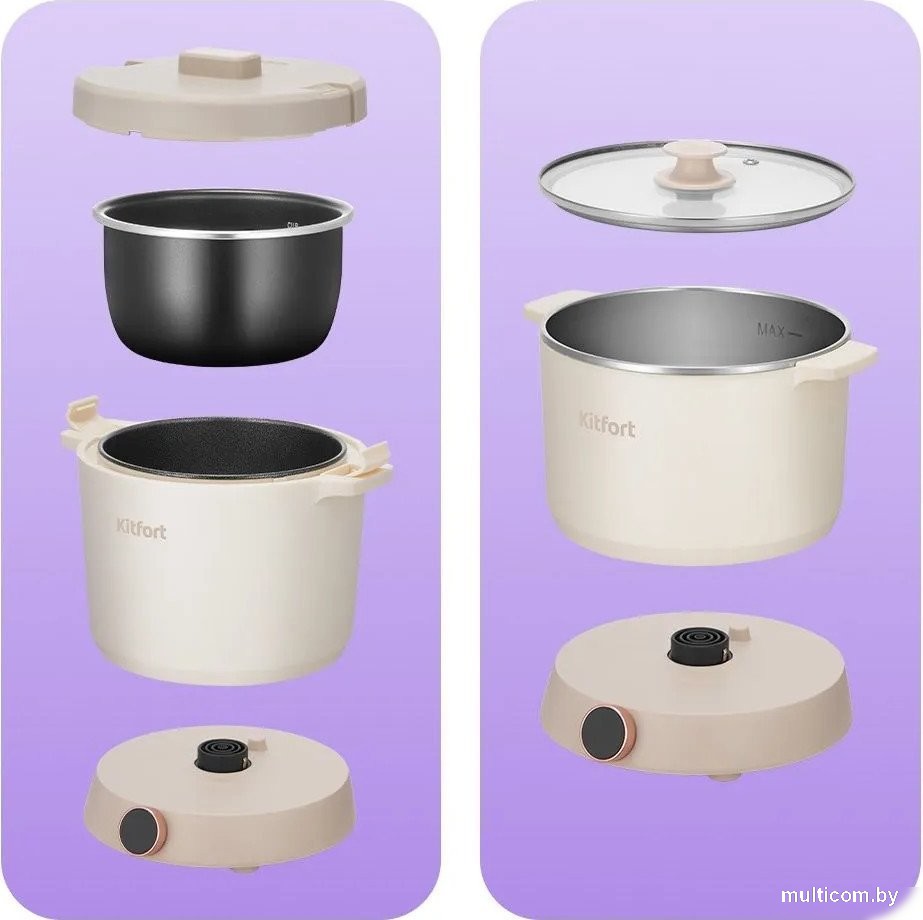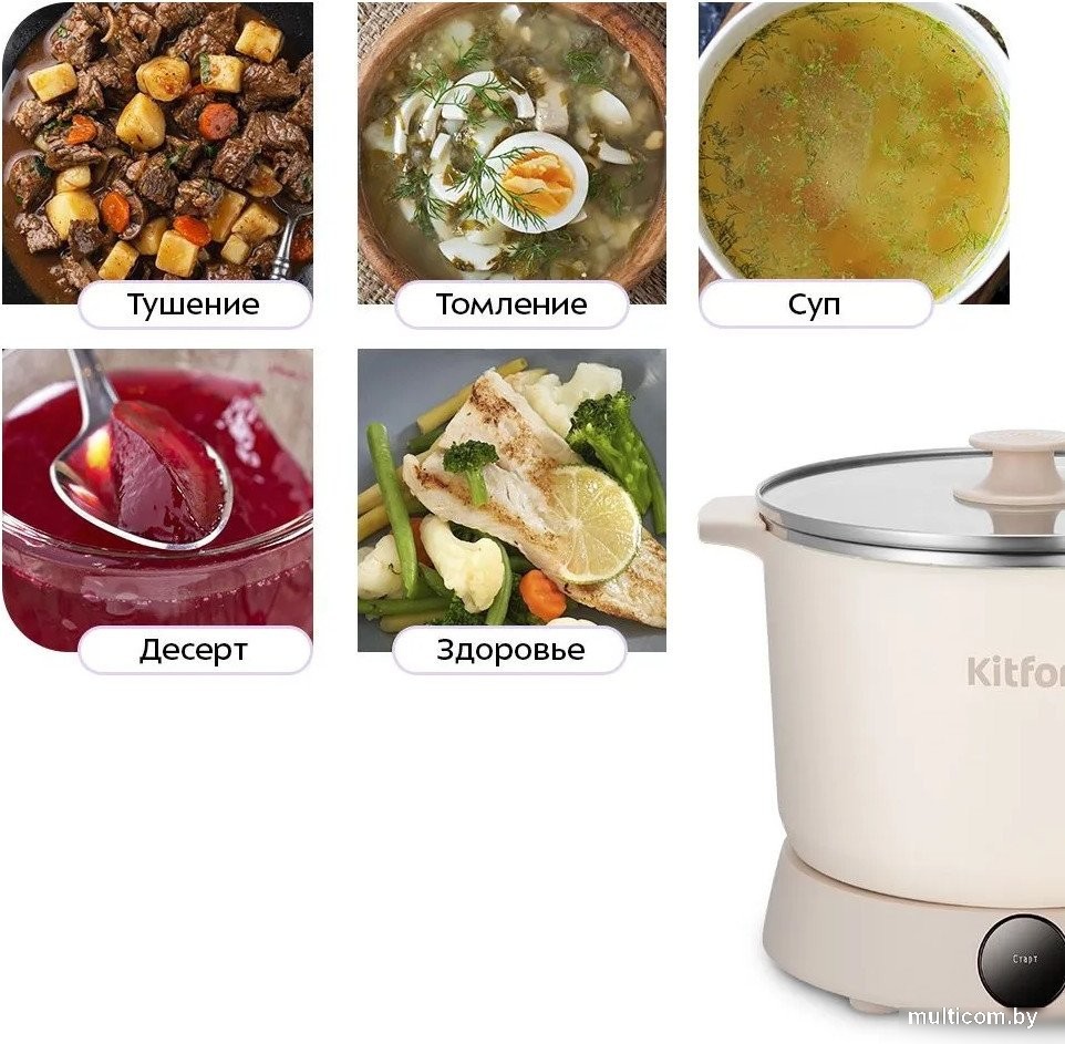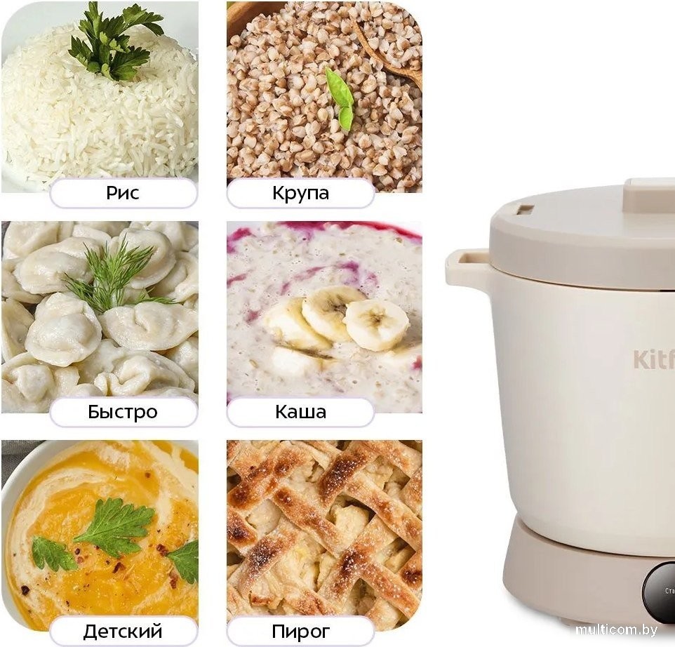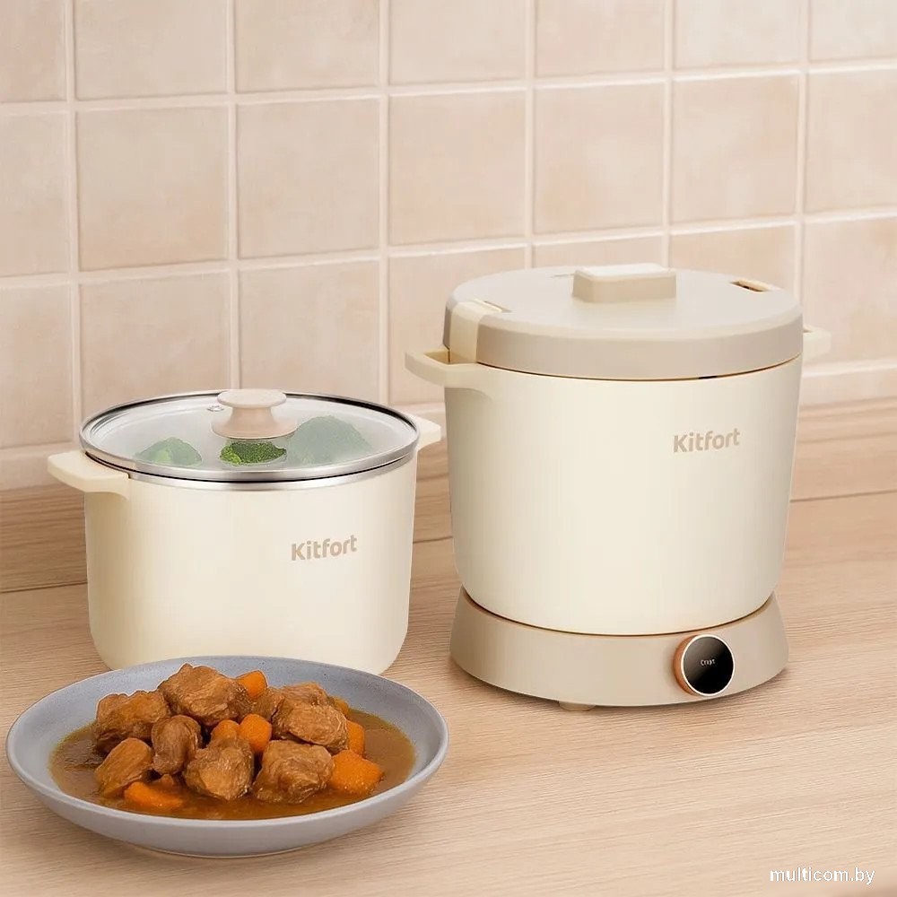 | Информация | -Мультиварка «2 в 1» Kitfort КТ-221 – это универсальный прибор для кухни, который сочетает функции мультиварки и кастрюли. Устройство позволяет готовить широкий спектр блюд:мясные, овощные, рыбные, каши, плов, а также выпечку и блюда на пару. Благодаря наличию двух чаш – с антипригарным покрытием и из нержавеющей стали – вы сможете легко готовить как привычные блюда, так и кулинарные новинки. -Мультиварка оборудована 6 автоматическими программами, а кастрюля – 5 программами для различных режимов приготовления, среди которых есть быстрый и детский режим, а также программы для десертов и полезных блюд. Объем обеих чаш составляет 1.8 литра, что оптимально для приготовления пищи на небольшую семью. -Устройство поддерживает функцию отложенного старта до 24 часов и автоматическое поддержание температуры готового блюда до 12 часов, что обеспечивает дополнительное удобство при планировании времени приготовления. Съёмная чаша с антипригарным покрытием облегчает уход, а специальная мерная ложка и стаканчик позволяют точно отмерять ингредиенты. -Компактные размеры, высокая функциональность и простой электронный способ управления делают Kitfort КТ-221 отличным выбором для ежедневного использования. В комплекте идут все необходимые аксессуары для легкой готовки, а стильный современный дизайн впишется в любой интерьер кухни. |