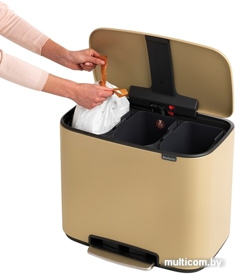 Информация | Бесшумный – плавное закрывание крышки и необыкновенно мягкий ход педали.Не пропускает запах – плотно прилегающая крышка.Экономия места – удобно устанавливается вплотную к стене или в углу.Крышка удобно фиксируется в открытом положении специальным переключателем.3 съемных внутренних ведра – идеальное решение для раздельного сбора домашних отходов.Удобная очистка – съемное внутреннее ведро из пластика.Отличная устойчивость и защита пола от повреждения – нескользящее основание.Бесплатная упаковка мешков для мусора Brabantia PerfectFit (размеры X) – удобная замена и всегда опрятный вид.Бронзовый сертификат "Cradle to Cradle".Бак подлежит вторичной переработке на 98 %, упаковка и внутренние ведра на 100%. |