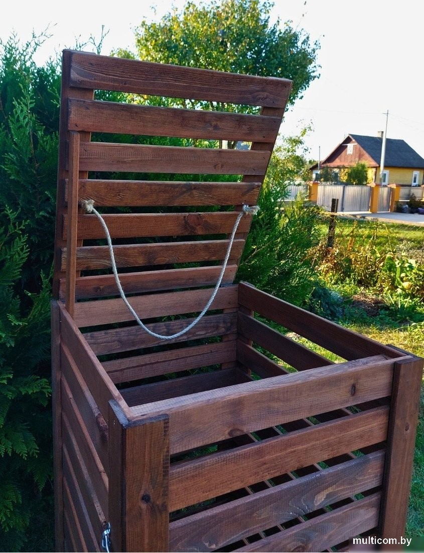 Информация | - В каждом дворе можно встретить пластиковый мусорный контейнер, который не всегда радует глаз. Теперь у вас есть возможность спрятать его в специальный деревянный бокс, который станет отличным украшением вашего приусадебного участка. - Комплект включает в себя: - деревянные элементы; - фурнитуру для сборки. |