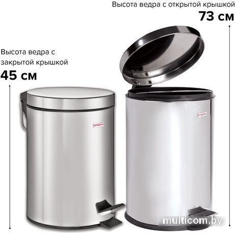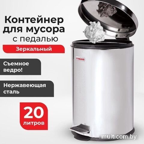 Информация | Ведро-контейнер для мусора ЛАЙМА "Classic" предназначено для утилизации отходов, помогает поддерживать порядок и чистоту как в офисном помещении, так и на предприятиях и в различных учреждениях. 20 л - подходящий объем при большой проходимости. Оборудовано педалью для открывания. Крышка плотно прилегает, тем самым препятствуя распространению запахов. Внутреннее съемное пластиковое ведро имеет удобную рукоятку для извлечения. Изготовлено из нержавеющей стали со специальным антикоррозийным покрытием, что обеспечивает максимально долгий срок службы. Ведро устойчиво благодаря антискользящему основанию. Объем рекомендуемого мешка - 30 л. Контейнер для мусора в стальном цвете с зеркальным покрытием имеет размеры (45х29,2х29,2 см) и отлично впишется в любой интерьер. |