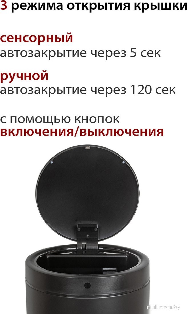 Информация | - Сенсорное бесконтактное ведро WB304B Pioneer выполнено из прочной нержавеющей стали и имеет объем 30 литров. Оно идеально подходит для использования в доме, на даче, в офисе и других помещениях. - В автоматическом режиме крышка ведра открывается при приближении человека на расстоянии 10-25 см благодаря инфракрасному датчику. Также ведро оснащено датчиком вибрации, что позволяет открывать крышку легким ударом ногой или рукой по корпусу. - Для удобства предусмотрена возможность принудительного открытия и закрытия крышки с помощью кнопки на панели. Если вы покинете зону действия датчика, крышка закроется автоматически через 5 секунд, а индикатор на сенсорной панели уведомит вас о закрытии. - Устройство работает от 6 алкалиновых батареек типа АА 1,5 В (в комплект не входят), и обычно их хватает на около 4 месяцев (3600 циклов открываний). - Благодаря лаконичному дизайну и спокойной расцветке, ведро легко впишется в любой интерьер и не требует скрытия. |