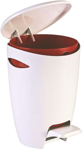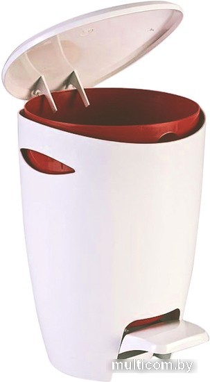 5 л, крышка открывается педалью, пластик, цвет: белый/красный