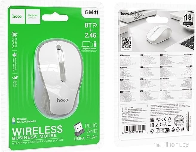 | Информация | - Hoco GM41 - это компактная беспроводная мышь, идеально подходящая для ноутбуков и мобильной работы. - Благодаря двум режимам подключения (2.4G и Bluetooth) она легко подключается как к компьютерам, так и к мобильным устройствам. Это обеспечивает высокую совместимость с различными устройствами и удобство в использовании без лишних проводов. - Мышь оснащена оптическим сенсором с регулируемым разрешением 800/1200/1600 DPI, что позволяет подобрать оптимальную чувствительность для разных задач. Наличие четырёх кнопок, включая кнопку смены разрешения, расширяет функционал устройства. |