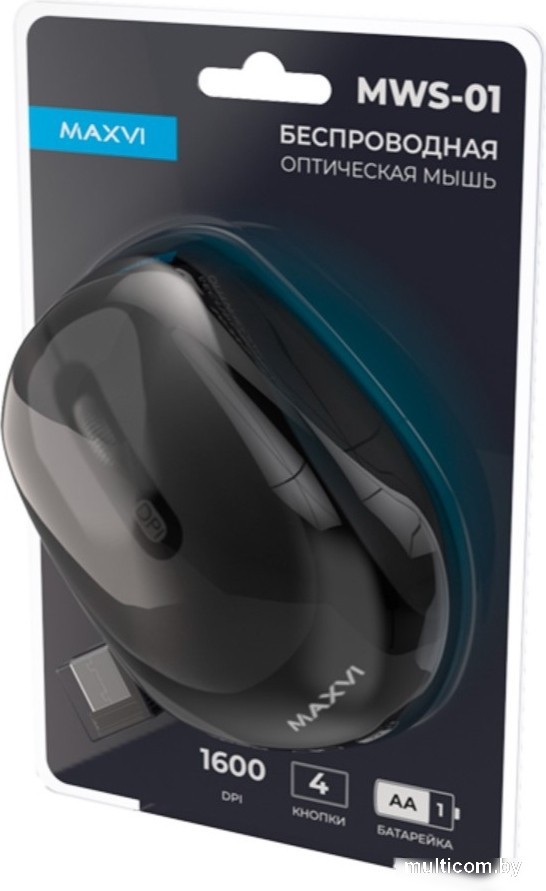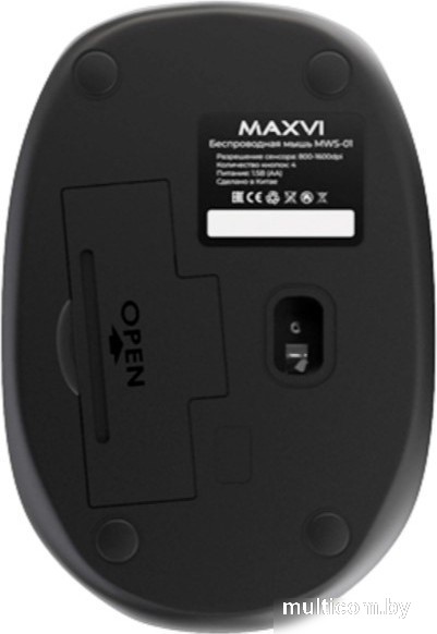 | Информация | Оптическая мышь Maxvi MWS-01 – это компактное устройство ввода для управления курсором, которое подключается к компьютеру посредством беспроводной связи при помощи USB наноресивера. Модель совместима со всеми операционными системами и не требует установки дополнительных драйверов для подключения. Корпус беспроводной мыши Maxvi MWS-01 имеет симметричную форму, которая одинаково подходит для использования как левой, так и правой рукой. Беспроводная мышь Maxvi MWS-01 имеет 2 основные кнопки, колесо прокрутки с функцией нажатия и дополнительную кнопку dpi, которая позволяет переключать режим работы чувствительности сенсора. В нижней части корпуса мышки расположен отсек для USB наноресивера, который понадобиться для хранения от потери во время транспортировки. За питание мышки отвечает одна батарейка типа АА. |