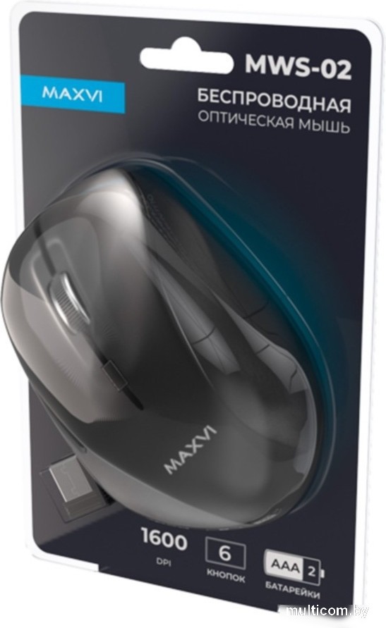 | Информация | Оптическая мышь Maxvi MWS-01 – это компактное устройство ввода для управления курсором, которое подключается к компьютеру посредством беспроводной связи при помощи USB наноресивера. Модель совместима со всеми операционными системами и не требует установки дополнительных драйверов для подключения. Корпус беспроводной мыши Maxvi MWS-01 имеет симметричную форму, которая одинаково подходит для использования как левой, так и правой рукой. Беспроводная мышь Maxvi MWS-01 имеет 2 основные кнопки, колесо прокрутки с функцией нажатия и дополнительную кнопку dpi, которая позволяет переключать режим работы чувствительности сенсора. В нижней части корпуса мышки расположен отсек для USB наноресивера, который понадобиться для хранения от потери во время транспортировки. За питание мышки отвечает одна батарейка типа АА. |