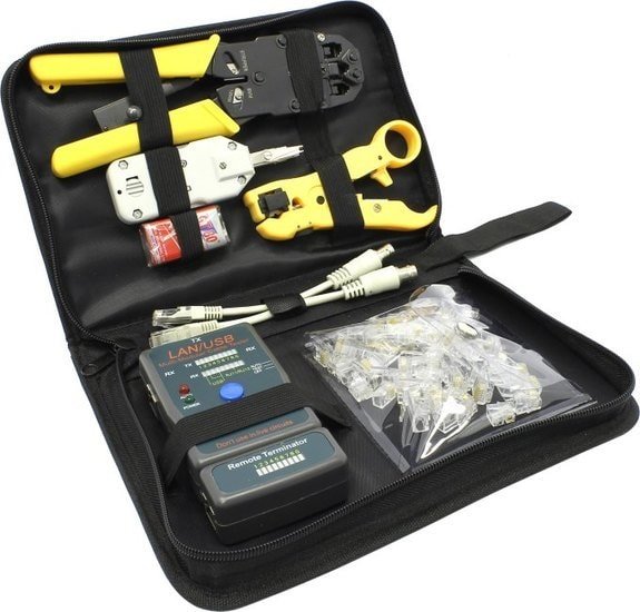 | Комплектация | Обжимные клещи LY-T2008R (с фиксатором), нож LY-352 для зачистки и резки кабеля, нож KRONE LY-T2020B, кабельный тестер LY-CT011 с батарейкой 9V, по 20 коннекторов RJ11 и RJ45 | комплект №1| комплект №2| сумка |