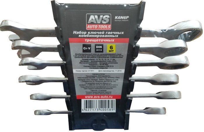 | Комплектация | Набор ключей гаечных комбинированных трещоточных: 8, 10, 12, 13, 14, 17 мм |