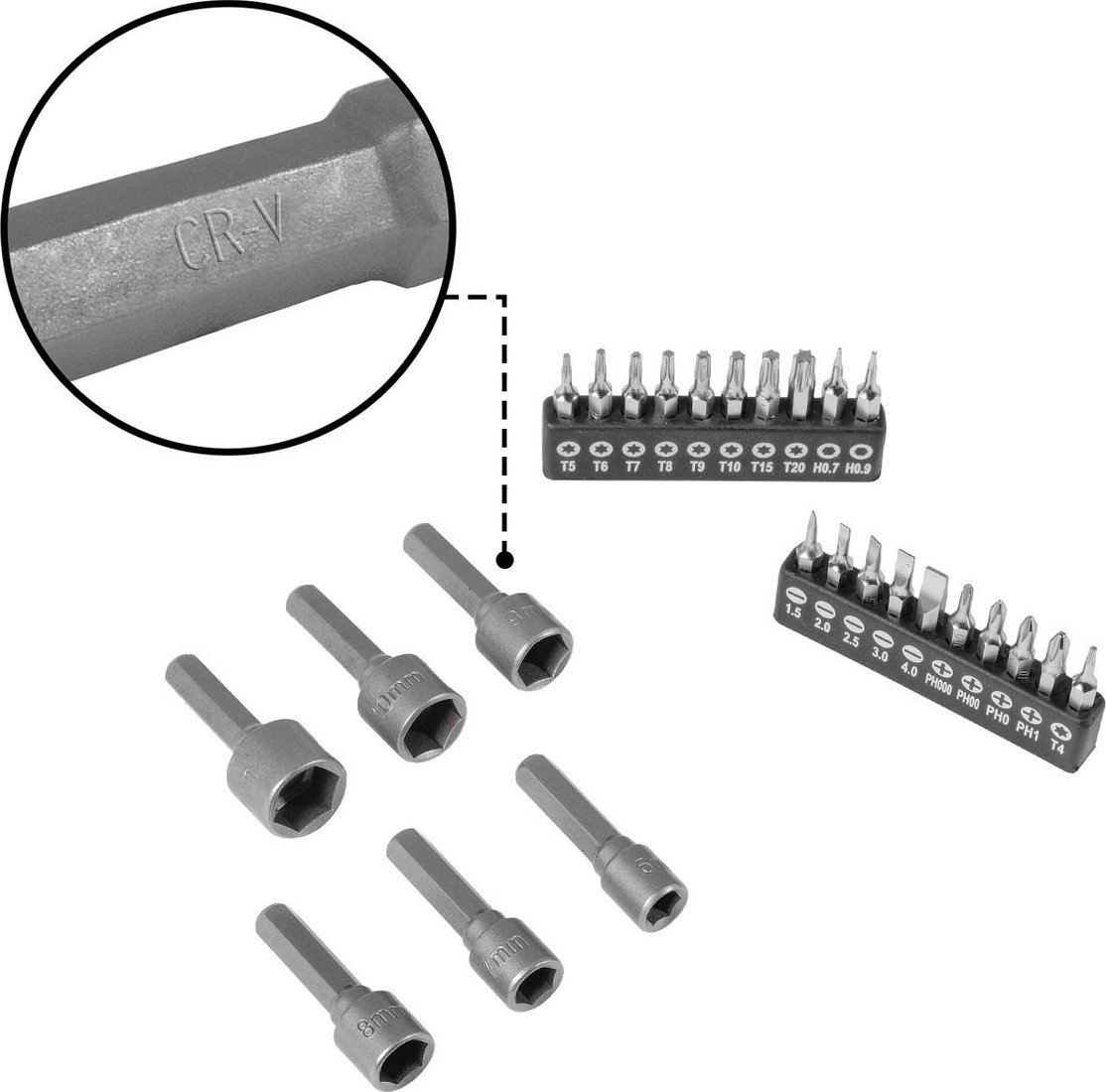 | Комплектация | Набор ручного инструмента BORT BTK-114 представляет собой идеальное решение для профессионалов и домашних мастеров, обеспечивая широкий ассортимент инструментов для различных задАч. Этот набор включает в себя все необходимое для выполнения как мелких, так и более сложных ремонтных и монтажных работ. Состав набора: Отвертки (16 шт.) Плоские отвертки SL: 3 x 75 мм 5 x 75 мм 5 x 100 мм 6 x 100 мм 6 x 150 мм 8 x 150 мм Крестовые отвертки Phillips: PH0 x 75 мм PH1 x 75 мм PH1 x 100 мм PH2 x 100 мм PH2 x 150 мм Отвертки Torx: T10 x 75 мм T15 x 75 мм T20 x 75 мм Квадратные отвертки Square: S1 x 75 мм S2 x 100 мм Биты под посадочное гнездо 1/4” (48 шт.) Hex: 3 мм, 4 мм, 5 мм, 6 мм Phillips: PH0, PH1, PH2, PH3 Torx: T10, T15, T20, T25, T27, T30 SL: S0, S1, S2, S3 Шестигранные ключи (16 шт.) Размеры: 1,5 мм, 2,0 мм, 2,5 мм, 3,0 мм, 4,0 мм, 5,0 мм, 5,5 мм, 6,0 мм, а также дюймовые размеры: 1/16”, 5/64”, 3/32”, 1/8”, 5/32”, 3/16”, 7/32”, 1/4?. Биты для точных работ посадочный размер 5/32” (20 шт.) Phillips: PH000, Y000 Hex: 0,8 мм, 1,2 мм, 1,0 мм, 1,5 мм, 2,0 мм Torx: T4, T5, T6 Отвертки для гаек (6 шт.) Размеры: 6 мм, 7 мм, 8 мм, 9 мм, 10 мм, 11 мм Отвертки для точных работ (6 шт.) Размеры: 2,0 x 40 мм, 2,5 x 40 мм, 3,0?40 мм, PH00 x 40 мм, PH0 x 40 мм, T10 x 40 мм Адаптеры Адаптер для бит 1/4” Адаптер для бит для точных работ 5/32” Адаптер для насадок |
