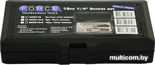 | Комплектация | - Торцевые головки Surface 1/4" (13 шт.), размеры: 4; 4.5; 5; 5.5; 6; 7; 8; 9; 10; 11; 12; 13; 14 мм.,- Трещотка 1/4", 72 зубца, длина - 115 мм.;- Удлинитель 1/4" (2 шт.), длина - 50 мм. и 150 мм.;- Кардан 1/4", длина - 37 мм.;- Вороток Т-образный 1/4" с плавающей головкой, длина - 115 мм.;- Вороток-отвертка 1/4", длина - 150 мм. |