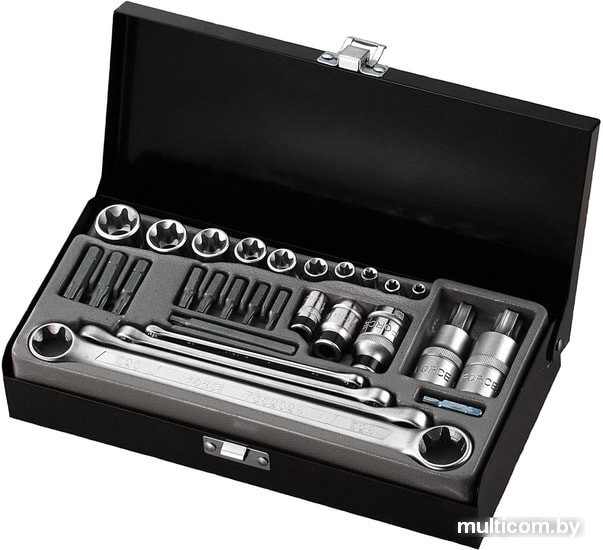 | Комплектация | - Торцевые головки 1/4"Е-профиль (5 шт.), длина – 25 мм. размеры: E5; E6;E7;E8;- Торцевые головки 3/8" Е-профиль (3 шт.), длина – 28 мм., размеры: E10; E12;E14;- Торцевые головки 1/2" Е-профиль (3 шт.), длина -38 мм., размеры: E16; E18; E20;- Биты 1/4" Torx (5 шт.), длина – 25 мм., размеры: T10; T20; T25; T27;T30;- Биты 5/16" Torx (3 шт.) длина – 35 мм., размеры: T40; T45; T50;- Головки-биты 1/2" Torx (2 шт.) длина – 55 мм., размеры: T55; T60;- Бита 1/4" Torx длина – 65 мм., размер:T25;- Бита 1/4" Torx с отверстием, длина – 30 мм., размер: T30H;- Ключи накидныеTorx (4 шт.), размеры:-E6 x E8; E10 x E12; E14 x E18; E20 x E24;- Держатель бит 1/4"(F) х 1/4"(F);- Держатель бит 3/8"(F) х 5/16"(F);- Держатель бит 1/2" (F) х 5/16"(F). |