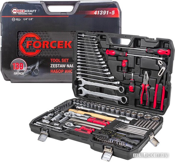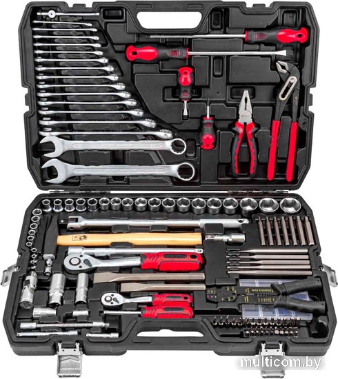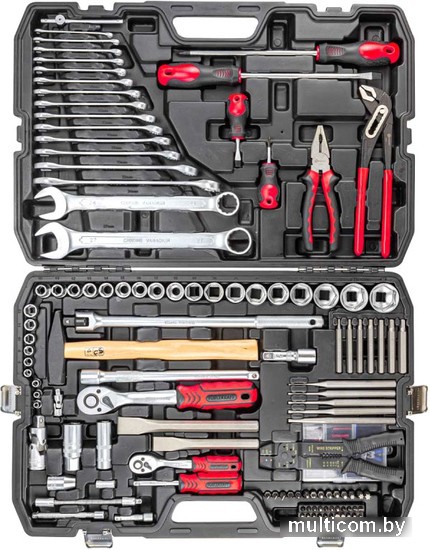 | Комплектация | Инструменты в наборе трещотка (2 шт.), отвертка (4 шт.), пассатижи (1 шт.), плоскогубцы (1 шт.), молоток (1 шт.), зубило (2 шт.), съемник изоляции (1 шт.), ключ гаечный (17 шт.) Трещотка 1/2? (72 зубца), 1/4? (72 зубца) Отвертки шлицевая (SL) (2 шт.), крестовая (PH) (2 шт.) Доп. комплектация рукоятка (1 шт.), кейс (пластиковый), выколотки (5 шт.), коннекторы (21 шт.) Оснастка головки (30 шт.), насадки-биты (43 шт.), удлинители (6 шт.), кардан (2 шт.), держатель (2 шт.) Головки торцевые шестигранные (28 шт.), свечные (2 шт.) Торцевые шестигранные головки 1/2? (10, 11, 12, 13, 14, 15, 16, 17, 18, 19, 20, 21, 22, 23, 24, 27, ), 1/4? (4, 5, 6, 7, 8, 9, 10, 11, 13 мм) Насадки-биты шлицевые (SL) (1/4": SL3, SL4, SL5.5, SL7; 5/16": SL4.5, SL5, SL7), крестовые (PH) (1/4": PH0, PH1, PH2, PH3; 5/16": PH1, PH2, PH3), шестигранные (Hex) (1/4": Н3, Н4, Н5, Н6, Н7; L=75 мм: Н4, Н5, Н6, Н7, Н8, Н10, Н12), звездочкой (Torx) (1/4": 10, 15, 20, 25, 27, 30; 5/16": 10, 20, 25, 27, 30, 40, 45,) Удлинители 1/2? (75, 250 мм), 1/4? (50, 100 мм), гибкий удлинитель (1/4", 1/2") Кардан 1/2?, 1/4? Ключи вороток (1 шт.), комбинированный (16 шт.) Воротки T-образный Размер ключа 8 мм, 10 мм, 11 мм, 12 мм, 13 мм, 14 мм, 15 мм, 17 мм, 16 мм, 19 мм, 22 мм, 24 мм, 6 мм, 7 мм, 9 мм, 27 мм |