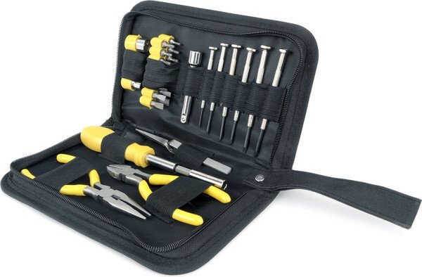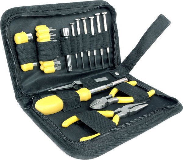 | Комплектация | Инструменты в наборе пассатижи, кусачки, пинцет (на разжим), отвертка Отвертки отвертка под биты, для точных работ (SL 1.4, 1.8, 2.4, 3 мм, PH 2.4, 3 мм) Доп. комплектация чехол Оснастка Оснастка удлинители, насадки-биты, головки, адаптер (на накидные головки) Головки накидные (5,6,8,10 мм) Насадки-биты шлицевые (SL) (3, 6 мм), крестовые (PH) (3, 6 мм), звездочкой (Torx) (2, 2.4, 2.9 мм), шестигранные (Hex) (1.5, 2, 2.5, 3, 4, 5, 6 мм) |