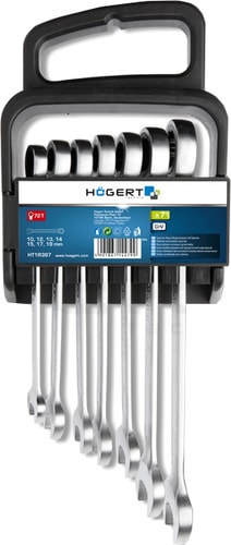 | Комплектация | Набор комбинированных ключей с односторонней трещоткой с 72 зубьями: 10/ 12/ 13/ 14/ 15/ 17/ 19 мм. |