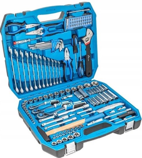 | Комплектация | шестигранные торцевые головки 1/4”: 4, 4.5, 5, 5.5, 6, 7, 8, 9, 10, 11, 12, 13, 14 ммдлинные шестигранные торцевые головки 1/4”: 6, 7, 8, 9, 10, 11, 12, 13 ммtорцевые головки Torx 1/4”: E4, E5, E6, E7, E8переходник 1/4”удлинитель 1/4": 75 ммгибкий удлинитель 1/4": 150 ммвороток Т-образный: 1/4", 115 мммОтвертка-вороток 1/4”Отвертка с держателем для бит 150 mmШарнир карданный 1/4”Плоские отвертки 1/4": SL3, SL4, SL4,5, SL5, SL5,5, SL6, SL7PH0, PH1, PH2, PH3, PH4PZ0, PZ1, PZ2, PZ3, PZ4H1,5, H2, H2,5, H3, H4, H5, H6Т10, Т15, Т20, Т25, Т27, Т30Трещотка 1/4", 72 зубаШестигранные насадки 3/8": 13, 14, 15, 16, 17, 18, 19 ммДлинные шестигранные головки 3/8": 13, 14, 15 ммНасадки Torx 3/8": E10, E11, E12, E14, E16, E18 Переходник: 3/8 F x 1/4 MУдлинитель 3/8": 150 ммШарнир карданный 3/8"Трещотка 3/8", 72 зубаШестигранные торцевые головки 1/2”: 20, 21, 22, 24, 27, 30, 32 ммДлинные шестигранные торцевые головки 1/2": 15, 17, 19 ммТорцевые головки Torx 1/2": E20, E22, E24Торцевые головки для свечей зажигания 1/2": 16, 21 ммУдлинитель 1/2": 127, 254 ммПереходник для бит 1/2"Шарнир карданный 1/2"Трещотка 1/2", 72 зубаПассатижи: 180 ммПассатижи: 160 ммМолоток слесарный: 300 гКлючи слесарные: 8, 9, 10, 11, 12, 13, 14, 15, 16, 17, 18, 19 ммШестигранные ключи: 1,5, 2, 2,5, 3, 4, 5, 6, 8, 10 ммРазводной ключ: 250 ммТестер напряжения: 110-250 ВОтвертка: PH2 x 100 мм, SL6 x 100 ммРезак: 175 ммНож с трапециевидным лезвием: 18 ммТелескопический магнит |