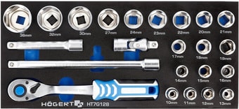 | Комплектация | - Торцевые головки: HT1A210 до HT1A236- Трещотка 1/2": HT1R322- Вороток 254 мм: HT1A727- Удлинитель 1/2" 127 мм: HT1A724- Шарнир 1/2": HT1A757 |