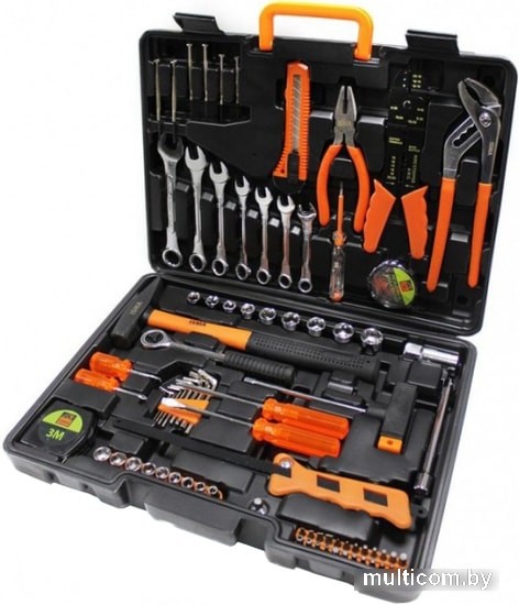 | Комплектация | 9 шт. - 1/4"Головки : 5, 6, 7, 8, 9, 10, 11, 12, 13 мм.9 шт. - 3/8"Головки: 10, 11, 12, 13, 14, 15, 16, 17, 19 мм.1 шт. - 3/8"Удлинитель 125 мм.1 шт. - 3/8"Головка свечная 21 мм.1 шт. - 3/8"Трещотка реверсивная7 шт. - Ключи комбинированные: 10, 11, 12, 13, 14, 15, 17 мм.1 шт. - Адаптер 3/8"(F)x1/4"(M)1 шт. - 1/4"Битодержатель1 шт. - 1/4"T-образная рукоятка8 шт. - Набор ключей Г-образных Hex: 1.5-2-2.5-3-4-5-5.5-6 мм.1 шт.- Пассатижи комбинированные 6"1 шт. - Пассатижи переставные 9"6 шт. - Отвертки для точных работ: PH00-0; SL1.0-1.4-1.8-2.4 мм.4 шт. - Отвертки: PH:2х100 мм., 2х38 мм.; SL:6х100 мм., 6х38 мм.1 шт. - Молоток 300 гр.1 шт. - Съемник изоляции 8"1 шт. - Ножовка ручная1 шт. - Нож универсальный1 шт. - Отвертка индикаторная24 шт. - Биты (с держателем): SL: 3-4-5.5-6 мм. PH: 0-1-2-3 Hex: 3-4-5-6 мм. PZ: 0-1-2-3 T:20-25-30-40 Hex с отверстием: 3-4-5-6 мм."1 шт. - Рулетка 3 м45 шт. - Клеммы соединительные1 шт. - Лента изоляционная ПВХ 5 м472 шт. - Набор крепежа (саморезы, дюбели и пр.)1 шт. - Пластиковый кейс |