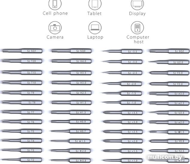| Биты (насадки-отвертки) | Да 48 (Hex, Torx, Phillips, Slotted, Tri-Wing, Triangle) (U-shaped, Pentalobe) |