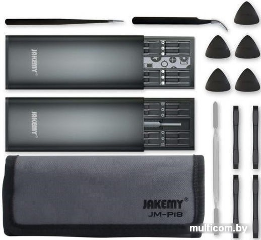 | Комплектация | - Чехол на липучке из плотной ткани «Оксфорд»- 4 нейлоновых спуджера- Прямой ESD пинцет JM-T2-11- Изогнутый ESD пинцет JM-T2-15- 5 медиаторов- Металлическая двухсторонняя лопатка- Кейс- Держатель бит 4ммSL: 1.5, 2.0, 2.5phillips: 1.0, 1.5, 2.0Torx: T2, T3, T4, T5, T6, T7, T8Hex: H1.3, H1.5, H2.0Tri-wing;triangle;U-shaped;pentalobe. |