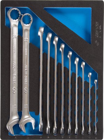 | Комплектация | Ключи комбинированные удлиненные (1061) – 8, 10, 12, 13, 14, 16, 17, 18, 19, 22, 24 мм; Ложемент EVA 280?375 мм, №9 |