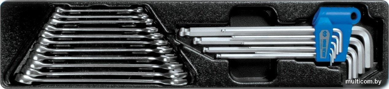 | Комплектация | Ключи комбинированные (1060) – 6, 7, 8, 9, 10, 11, 12, 13, 14, 15, 16 мм; Набор HEX L-типа с шаром (20109MR) – H1.5, H2, H2.5, H3, H4, H5, H6, H8, H10; Ложемент PVC 460?105 мм, №13 |