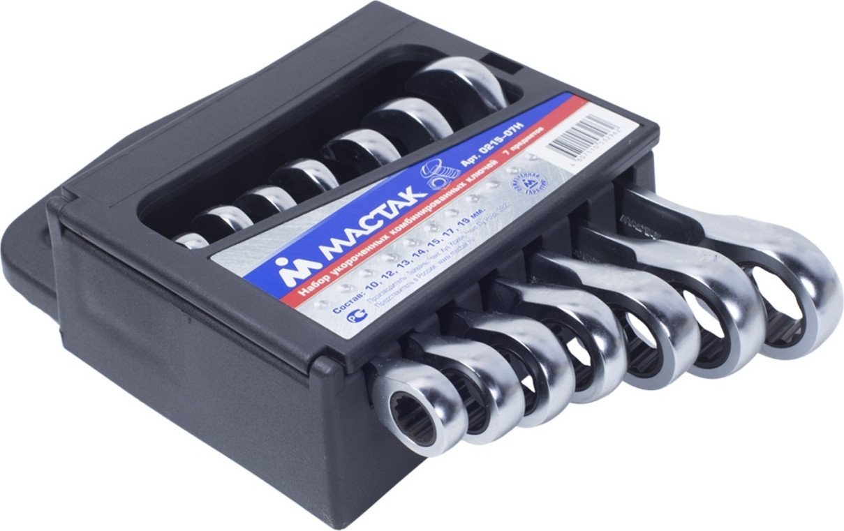 | Комплектация | Ключ комбинированный укороченный с трещоткой 10, 12, 13, 14, 15, 17, 19 мм |