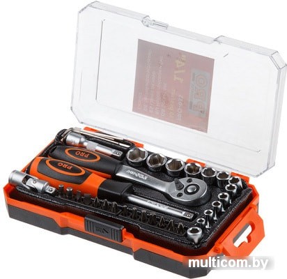 | Комплектация | - Головки торцевые на 1/4": 4 мм, 4,5 мм, 5 мм, 5,5 мм, 6 мм, 7 мм, 8 мм, 9 мм, 10 мм, 11 мм, 12 мм, 13 мм- Биты-насадки 1/4": HEX 4 мм. 5 мм; SL 4 мм, 5,5 мм; PH1, PH2, PH3; PZ1, PZ2, PZ3; T15, T20, T25, T30- Трещотки 1/4"- Удлинители 1/4" 50 мм- Карданы 1/4"- Переходники 30 мм- Ключи шестигранные 1,27 - 2,5 мм |