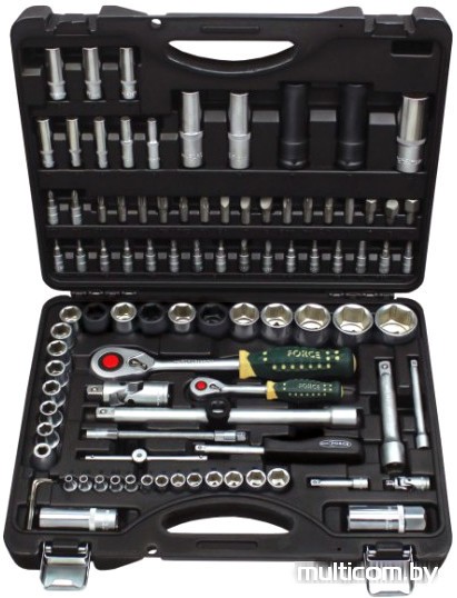 | Комплектация | Привод 1/4":- 13 шт 6-гр. коротких головок 4, 4.5, 5, 5.5, 6, 7, 8, 9, 10, 11, 12, 13, 14 мм.- 8 шт 6-гр. длинных (длина 50 мм.) головок 6, 7, 8, 9, 10, 11, 12, 13 мм.- 18 шт головок-бит (длина 32 мм.):шестигранные (HEX): 3, 4, 5, 6 мм.с внешней звездой (TORX): T8, T10, T15, T20, T25, T30шлицевые (SLOTTED): 4, 5.5, 6, 5 мм.(PHILLIPS): PH1, PH2(POZI): PZ1, PZ2- трещотка реверсивная 48 зубьев с усиленным механизмом- 2 удлинителя 50 мм., 100 мм.- Гибкий вал 100 мм- карданный шарнир- вороток- отверточная рукоятка- 3 шестигранника 1.5, 2, 2.5 мм.Привод 1/2":- 14 шт 6-гр. коротких + 3 шт ударных (CR-MO) головок 10, 11, 12, 13, 14, 15, 16, 17, 18, 19, 20, 21, 22, 24, 27, 30, 32 мм.- 3 шт 6-гр. длинных (длина 77 мм.) + 2 шт ударных (CR-MO) головок 14, 15, 17, 19, 22 мм.- адаптер ударный (CR-MO) 3/8"(F) x 1/2"(M)- держатель бит 1/2"DRx5/16"- 16 5/16" бит (длина 30 мм.):шестигранные (HEX): 7, 8, 10, 12, 14 мм.с внешней звездой (TORX): T40, T45, T50, T55шлицевые (SLOTTED): 8, 10, 12 мм.(PHILLIPS): PH3, PH4(POZI): PZ3, PZ4- трещотка реверсивная- 2 удлинителя 125 мм., 250 мм.- 2 головки свечные 16 мм., 20 мм.- карданный шарнир |