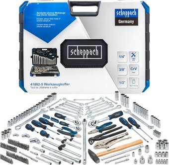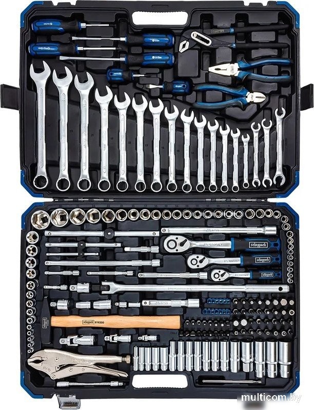 | Комплектация | Головки 6 гранные 1/4": 4, 4.5, 5, 5.5, 6, 7, 8, 9, 10 мм.9 шт.; Головки 6 гранные глубокие 1/4": 6, 8, 10, 12, 13 мм.5 шт.; Головки Е-тип 1/4": E4, E5, E6, E7, E8 5 шт.; Кардан 1/4"; Биты 1/4": H1.5, H2, H2.5 mm; T5, T6, T7, T8, T9, T10; SL3, SL4 mm; PH0; PZ0 - 13 шт.; Вороток Т-образный 1/4" : 110 мм.; Гибкий удлинитель 1/4"; Трещотка 1/4"; Удлинитель 1/4": 50, 75, 100 мм. 3 шт.; Биты 5/16": H3, H4; T10, T15, T20, T30, T40; SL5.5, SL6.5, SL8, SL9.5; PH1, PH2, PH3; PZ1, PZ2, PZ3 - 17 шт.; Биты 10 мм.: Hex: 5, 6, 7, 8, 10, 12, 14 mm; Torx with hole: TT10, TT15, TT20, TT30, TT40, TT45, TT50; Phillips: PH1, PH2, PH3; Pozidriv: PZ1, PZ2; Spline: M6, M8, M10, M12, M14, M16; Spline with hole: MH5, MH6, MH7, MH8, MH10, MH12, MH14 - 32 шт.; Головки 6 гранные 3/8": 10, 11, 12, 13, 14, 15 мм. - 6 шт.; Головки 6 гранныеглубокие 3/8": 8, 9, 10, 11, 12, 13, 14 мм. - 7 шт.; Головки Е-тип 3/8": E10, E11, E12, E14 - 4 шт.; Трещотка 3/8"; Вороток Т-образный 3/8": 165 мм.; Кардан 3/8"; 3x 3/8" Extension Bar: 75, 150, 250 мм. 3 шт.; Головки 6 гранные 1/2": 8, 9, 10, 11, 12, 13, 14, 15, 16, 17, 18, 19, 22, 24, 27, 30, 32 мм.17 шт.; Головки глубокие 6 гранные 1/2": 17, 19, 22 мм.; Трещотка 1/2 72T; Удлинитель 1/2": 125, 250 mm 2 шт.; Кардан 1/2"; Головки Е-тип 1/2": E16, E18, E20, E22, E24 5 шт.; Удлинитель 1/2" : 250 мм.; Гибкий удлинитель 1/2" : 430 мм.; Головки свечные 1/2": 16, 21 мм. - 2 шт.; Адаптеры 1/2": 3/8"(F)x1/4"(M), 3/8"(F)x1/2"(M), 1/2"(F)x3/8"(M) - 3 шт.; Битодержатели: 1/4"(F)x1/4"(F), 3/8"(F)x5/16"(F), 1/2"(F)x10 mm(F) - 3 шт; Ключи комбинированные: 8, 10, 11, 12, 13, 14, 15, 16, 17, 18,19, 21, 22, 24 мм.14 шт.; Ключи разрезные: 8x10, 11x13, 12x14 мм. 3 шт.; Отвертки: PH 2x38 mm, PH 2x100 мм, PH 1x75 мм.; SL 5.5x125 мм, SL 6x38 мм, SL 6.5x150 мм. 6 шт.; Магнит телескопический: 130-640 мм.; Зажим гейферный 225 мм.; Клещи переставные: 250 мм.; Комбинированные пассатижи 175 мм.; Бокорезы 150 мм.; Молоток 300 гр.; Пластиковый кейс. |