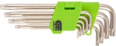 | Комплектация | Набор ключей имбусовых Tamper-Torx, 9 шт: ТТ10-ТТ50,45x, закаленные, удлиненные, никель. |