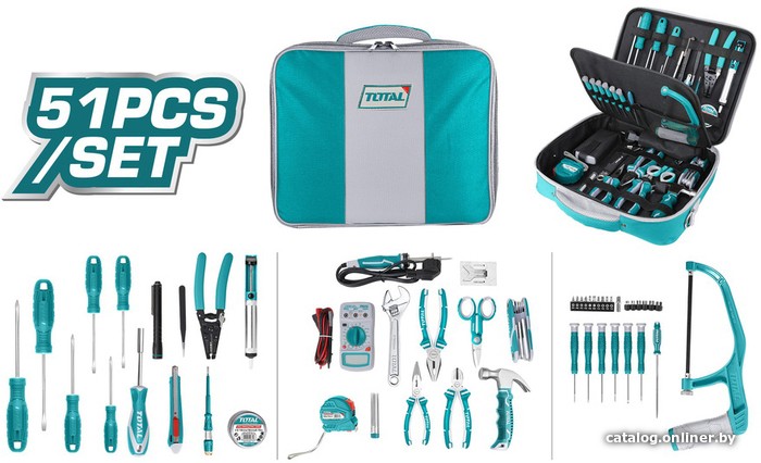 | Комплектация | Отвертки крестовые Phillips: PH0*75мм, PH1*100мм, PH2*150мм - 3 шт. Отвертки шлицевые: SL3*75мм, SL5*100мм, SL6*150мм - 3 шт. Отвертоки прецизионные: SL2*50мм, SL2*55мм, SL3*50мм, PH000*50мм, PH00*50мм, PH0*50мм - 6 шт. Шестигранных ключи: 2-8мм - 8 шт. Биты: шестигранник 4 мм, шестигранник 5 мм, T20, T25, SL4, SL6, PH1, PH2, PZ1, PZ2 - 10 шт. Магнитный хвостовик 100 мм - 1 шт. Рулетка 3м*16мм - 1 шт. Мини-молоток - 1 шт. Индикаторная отвертка 190 мм - 1 шт. Длинногубцы 6" - 1 шт. Диагональные кусачки 6" - 1 шт. Комбинированные плоскогубцы 7" - 1 шт. Разводной ключ 8" - 1 шт. Нож с сегментным лезвием - 1 шт. Полукруглый стальной напильник 3*140мм - 1 шт. Пинцет 125мм - 1 шт. Ножницы 5,5" - 1 шт. Изолента ПВХ 18мм*9,15 м - 1 шт. Клещи для зачистки проводов 6" - 1 шт. Фонарик - 1 шт. Шестигранные головоки 1/4": 5мм, 6мм, 8мм, 9мм, 10мм, 11мм. - 6 шт. Переходник 4мм на 6мм - 1 шт. Мини-ножовка по металлу 6" - 1 шт. Цифровой мультиметр - 1 шт. Паяльник 40Вт - 1 шт. Подставка/держатель для паяльника - 1 шт. Припой 10г - 1 шт. Экстрактор припоя - 1 шт. Сумка |
